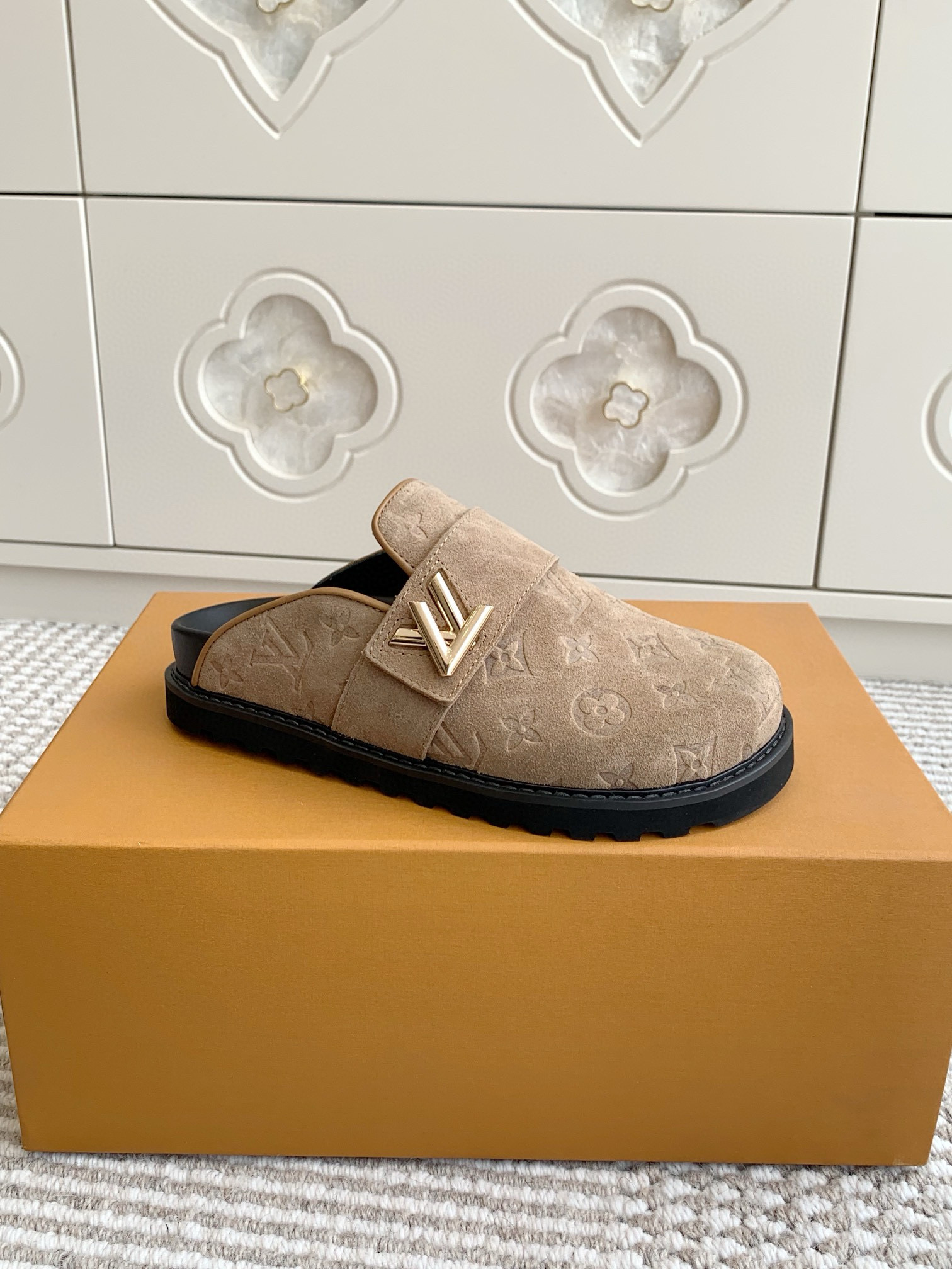 سليبر Louis Vuitton2 - عسلي محفور